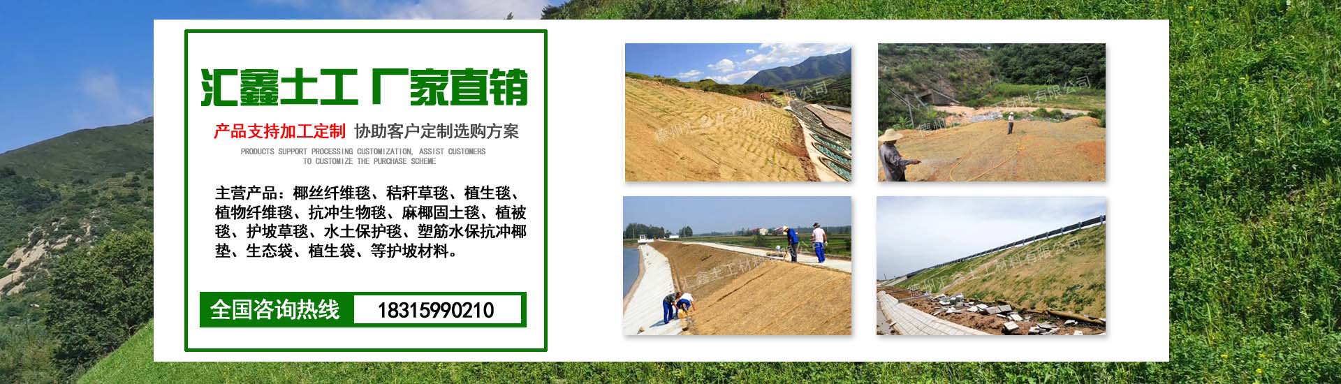 德州匯鑫土工材料有限公司是一家專業(yè)生態(tài)護(hù)坡產(chǎn)品、技術(shù)服務(wù)及施工為一體的綜合性企業(yè)。公司主要生產(chǎn)銷售植物纖維毯、植生毯、椰絲毯、抗沖生物毯、生態(tài)毯、秸稈纖維毯、麻椰固土毯、塑筋水保抗沖椰墊、生態(tài)袋、植生袋等各種護(hù)坡材料,產(chǎn)品廣泛應(yīng)用于:高速公路邊坡綠化、山體邊坡綠化護(hù)坡、河道邊坡、人工湖邊坡防護(hù)及其他生態(tài)邊坡治理等工程。經(jīng)廣大工程單位使用證明,產(chǎn)品質(zhì)優(yōu)價(jià)廉,施工方便,售后服務(wù)好,得到廣大客戶的一致好評(píng)。 "為客戶提供優(yōu)質(zhì)產(chǎn)品及服務(wù)"的宗旨, 熱誠(chéng)希望攜手各界朋友,共鑄造彼此輝煌。 ...